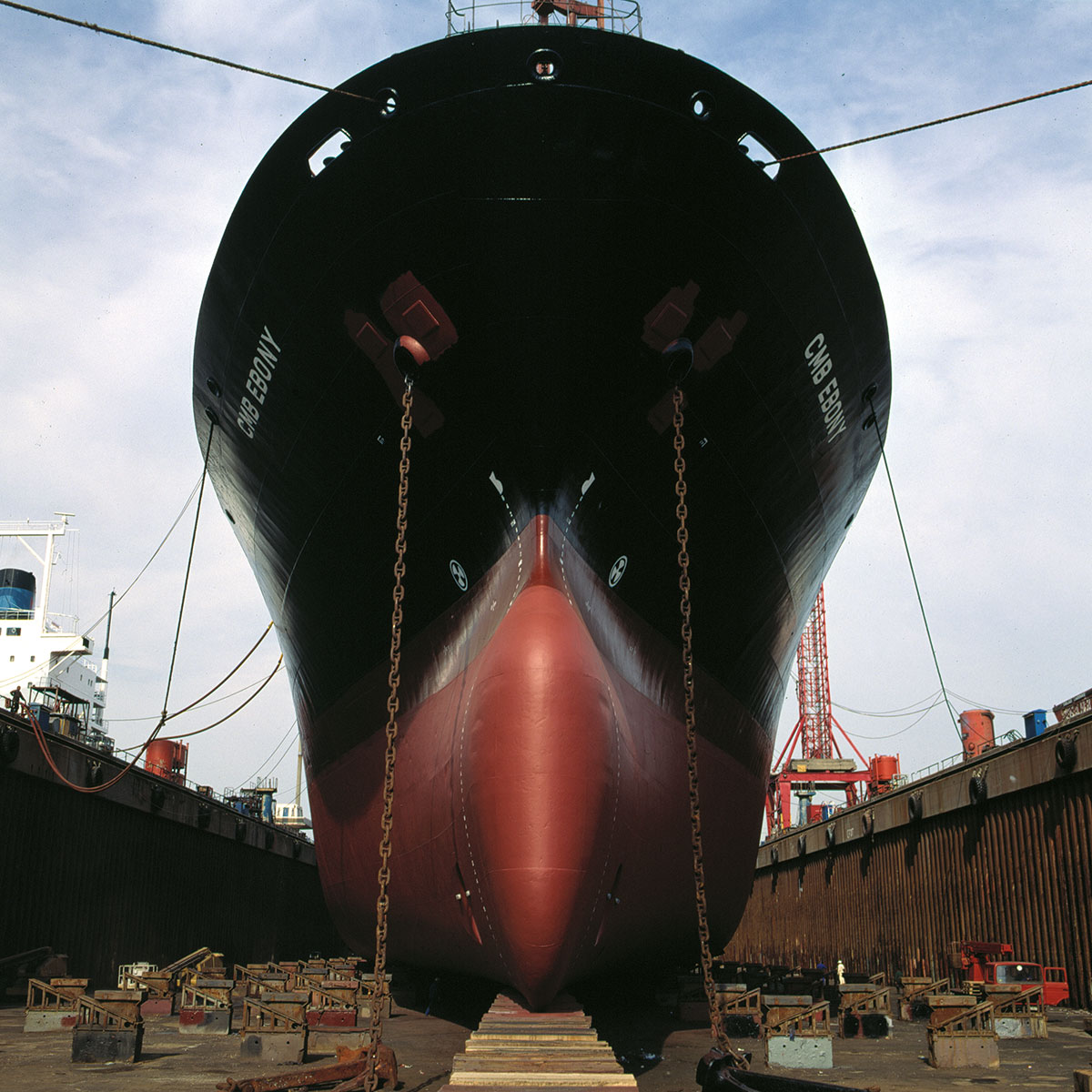 Les photographies en couleur de Philippe Dapvril ont été prises pour l’essentiel entre 1994 et 2000. Réalisées à la chambre ou au moyen format, dans un style documentaire, elles dressent le portrait de lieux, d’édifices, d’objets, qui, pour certains, ont aujourd’hui disparu. Les structures gigantesques, modelées par la lumière, apparaissent comme autant de paysages désertés où l’homme n’y figure que par les traces de son travail. Les images exposées au Tri Postal, édifice qui garde lui aussi l’empreinte de son activité, renvoient tour à tour au vocabulaire des marins – estacades, radoub, dock, môle, vrac -, identifient l’activité industrielle et singulière de chaque ville et soulignent enfin le caractère universel de ces paysages où l’espoir d’un ailleurs est possible.