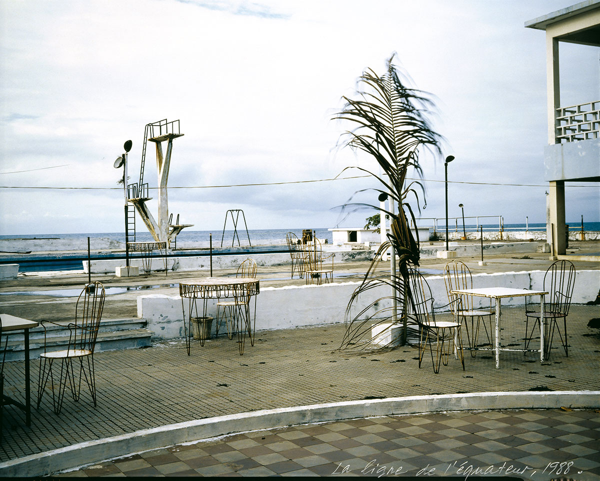 Les photographies exposées dans l’Aquarium de Valenciennes, des paysages vides, gagnés par une atmosphère de désolation, ouvrent une autre question : celle de la représentation d’un lieu mythique, présent dans la mémoire collective, confronté à la banalité de son état actuel. La question est posée par la présence même d’une inscription manuscrite sur la photographie désignant le lieu et la date de prise de vue. Les cinq œuvres présentées ont déjà été rassemblées dans une exposition collective, en 1997, qui s’intitulait : » Géographiques : territoires vécus, territoires voulus, territoires figurés « . Sophie Ristelhueber propose effectivement, à travers cette série libre, un dialogue entre le vécu et le figuré. Elle explique : » La ligne de l’équateur : pour moi, c’est un globe terrestre dans une salle de classe, coupé en son milieu par le parallèle 0°. Comment photographier quelque chose d’aussi abstrait ? » Elle a choisi la terrasse d’un café abandonné sur l’île de São Tomé, dans le golfe de Guinée, un des sites que traversent ces 40 000 kilomètres d’abstraction. La vue aérienne de Chatt al-‘Arab, montre ce delta situé en Irak, formé par la confluence du Tigre et de l’Euphrate et, qui termine la Mésopotamie : » Là où se sont développées les premières civilisations urbaines, rien à voir avec ces marais de l’Irak asséchés et troués par les bombes « . Elle poursuit : » Sodome. Cette usine d’extraction de sel, au sud de la mer Morte, peut-elle être considérée comme un vestige du châtiment qui a frappé la cité biblique ? Sabra et Chatila. En quoi ces deux enfants, le cheval et la bicyclette évoquent-ils le massacre commis en ces lieux quelques mois plus tôt ? Waterloo. No comment ! »