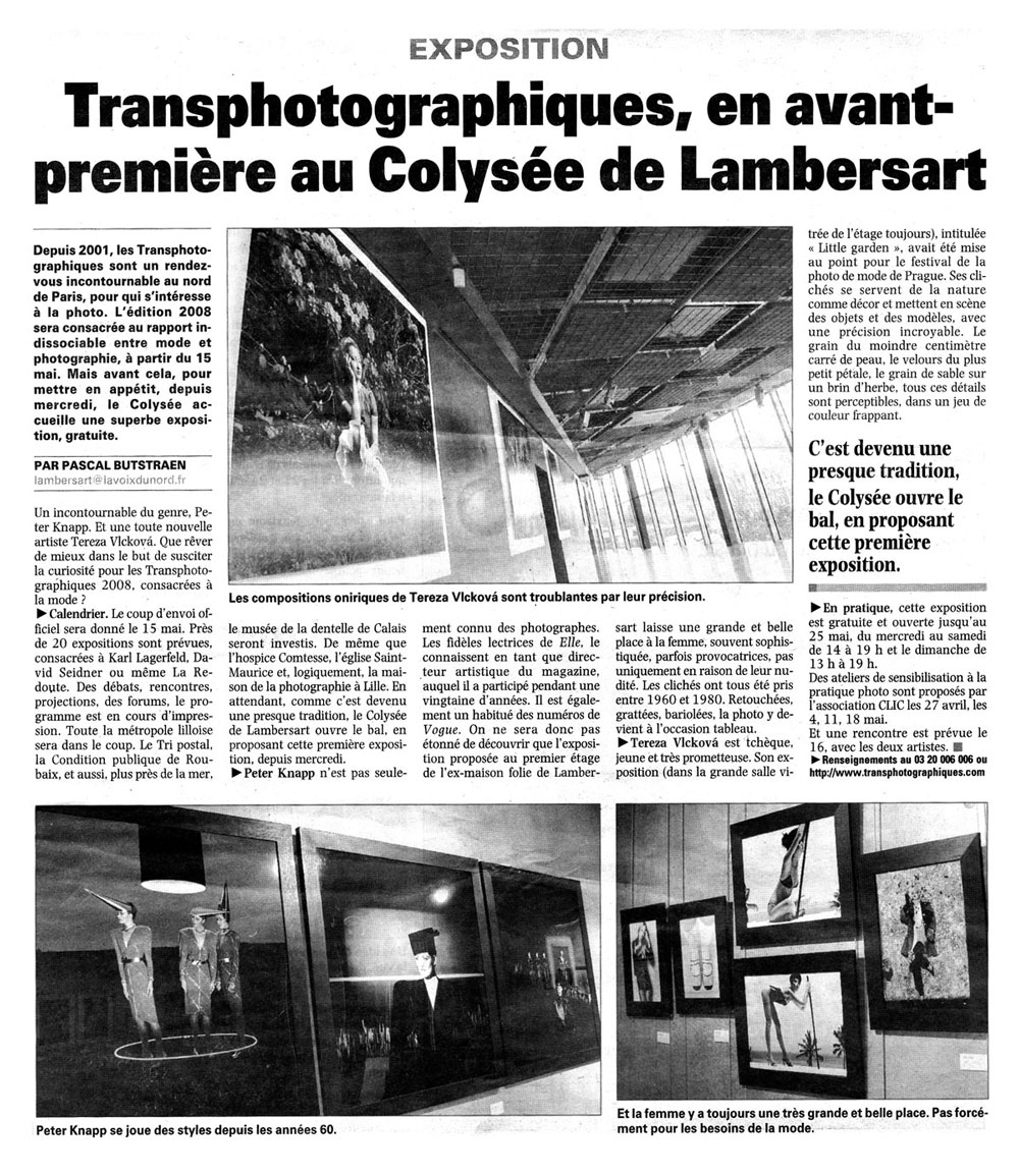 Voix du Nord : Des photos comme des fleurs dans un jardin Lille 2004 : Les Transphotographiques s'installent à Croix du 15 mai au 15