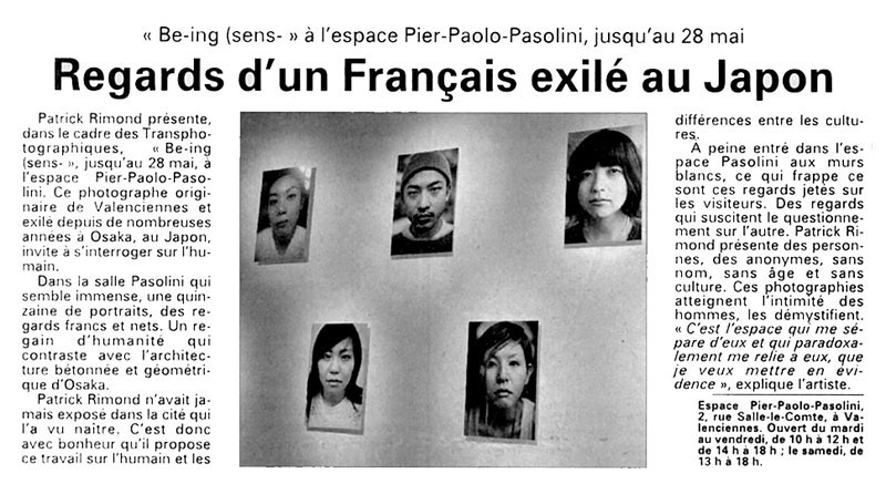 Voix du Nord : Regards d'un Français exilé au Japon « Be-ing (sens- » à l'espace Pier-Paolo-Pasolini, jusqu'au 28 mai Patrick Rimond présente, dans le cadre