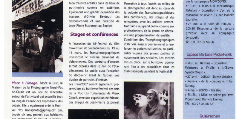 Culture Magazine Valenciennes : Clic-clac cinéma Photographie et cinéma, c'est le thème des Transphotographiques qui se dérouleront du 10 mai au 17 juin dans l'agglomération. Place